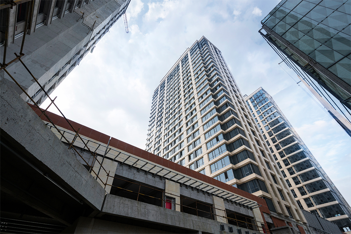 辦公區(qū)沿基地西側(cè)布置,靠近基地西側(cè)的大型景觀公園,使整個(gè)建筑群最大程度的享受到城市中央景觀,辦公區(qū)相對(duì)獨(dú)立,同時(shí)底層架空綠化與商業(yè)街區(qū)流線分開(kāi),提升了辦公的品質(zhì)。