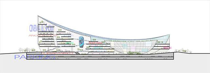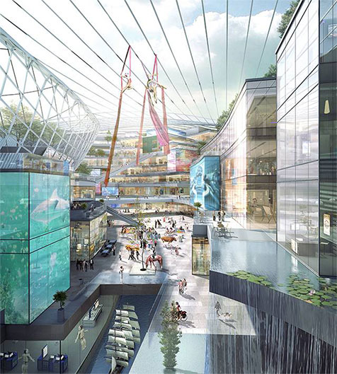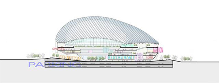 我們的靈感來源于體育場館建筑原型,意圖用超級碗的建筑形式來解決商業綜合體面臨的諸多城市問題。