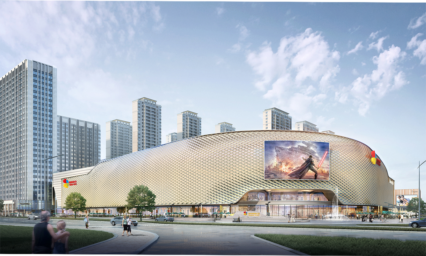 這是一個大型多功能、整體開發的區域綜合體項目。此項目的重點是塑造一個多功能混合的商業綜合體,使其成為該地區的活力聚合中心,同時也是一個城市形象的代表。項目處于城市的兩條主要道路之間。設計師對于這兩個邊界形象的定位是透明并且開放。尤其是面對主道的立面部分,設計師采用了參數化設計,形成虛實對比的效果,并且在保證視覺效果的同時也不忘實用功能。