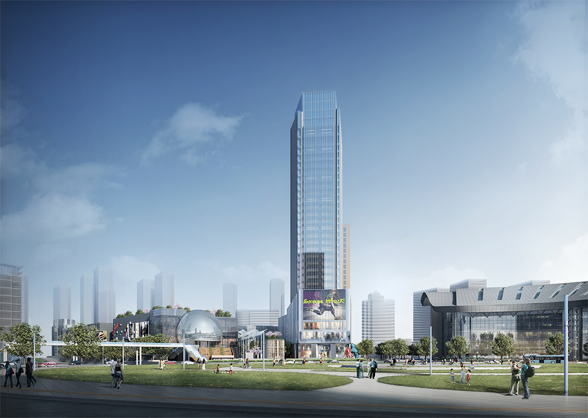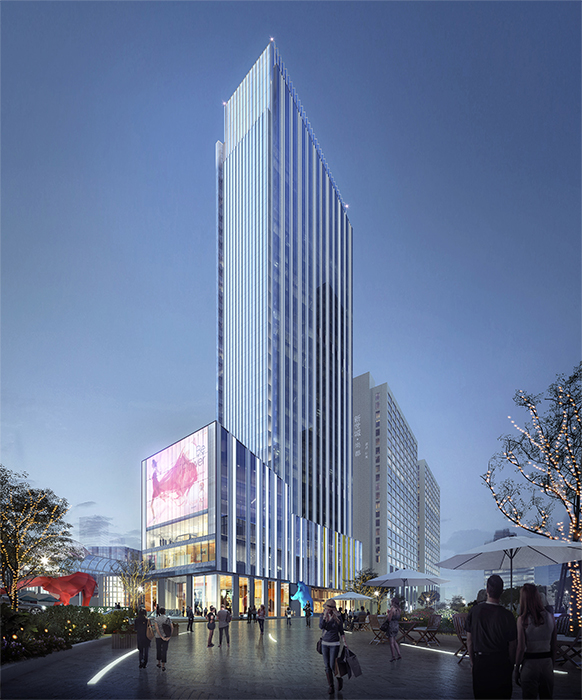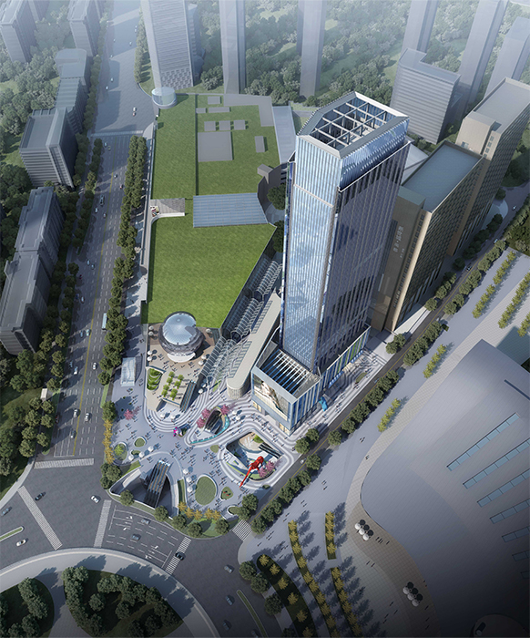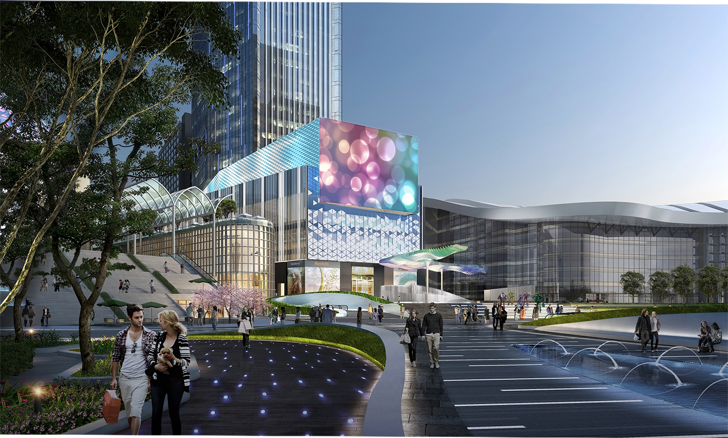 設置下層廣場與地鐵站無縫對接;設置商業連廊,放大主要出入口,在主要位置放置 LED 電子屏裝點入口廣場;設計立體交通以匯聚光谷廣場地上地下以及一期步行街人流;屋頂造型獨特。設計師通過一系列方式體現“光”的概念,力圖讓每一個經過光谷廣場的人都能感受其特點,從而打造一道全新的城市亮麗風景線。