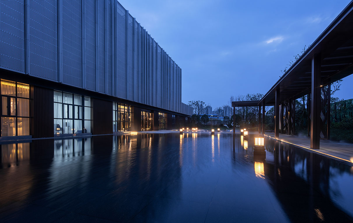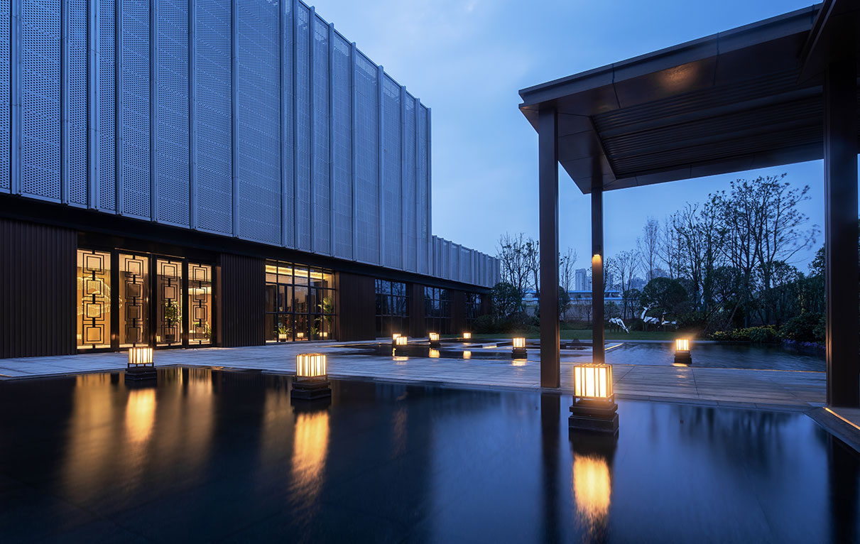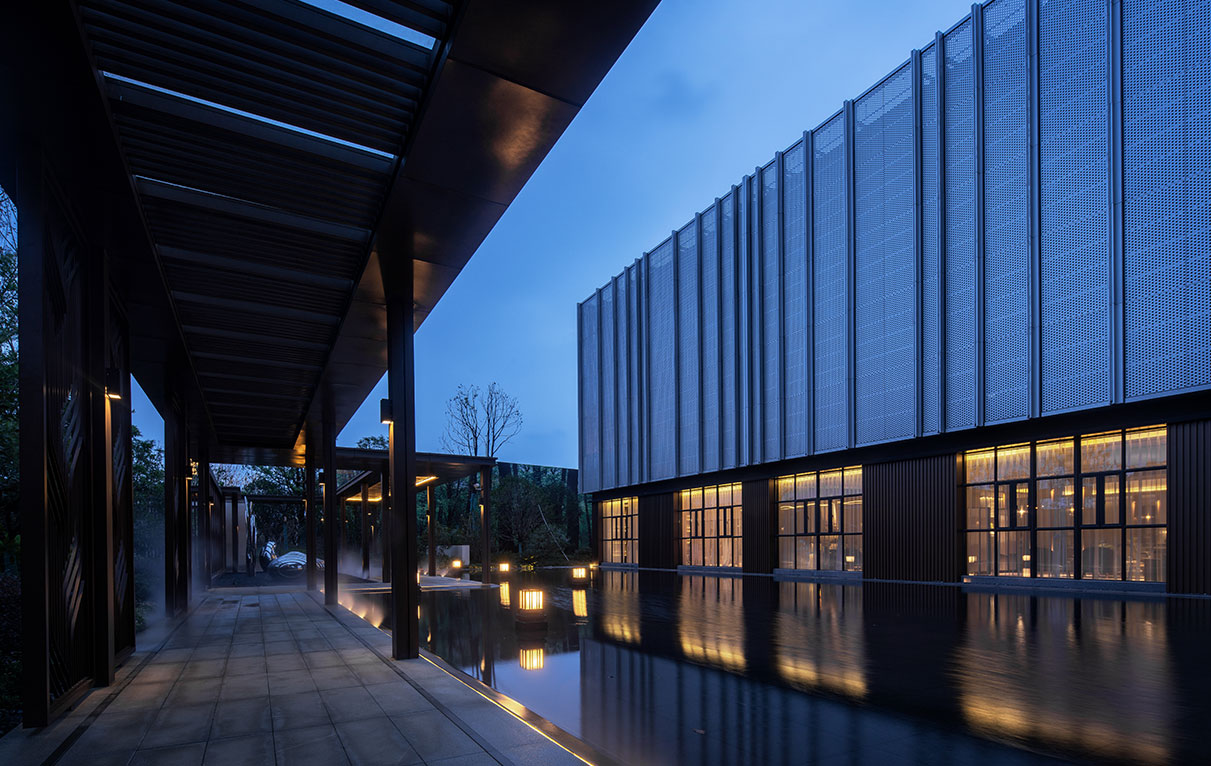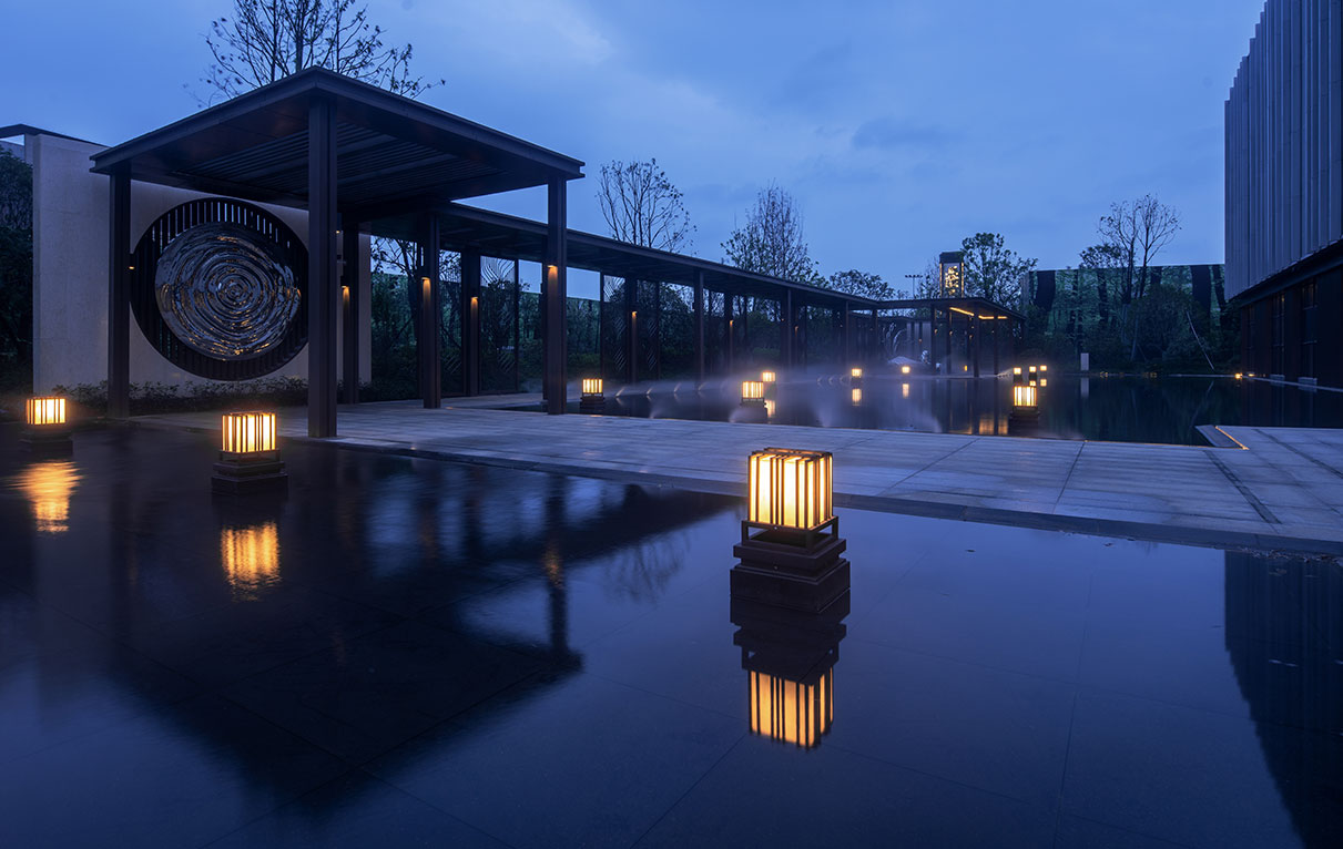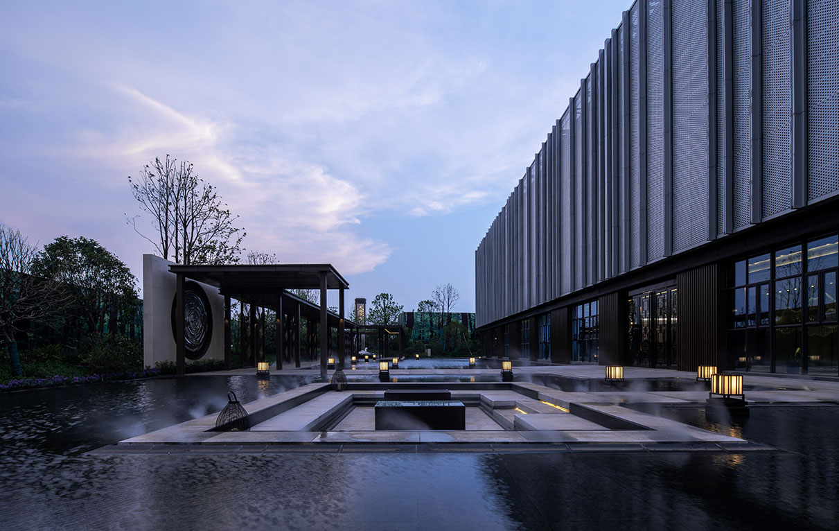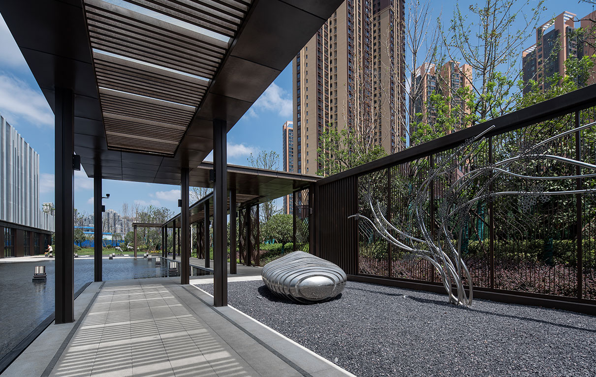 武漢洺悅芳華示范區位于湖北省武漢市經濟技術開發區,項目所屬區域在三環線以內為主城區。在項目場地中,商業建筑的南側與項目場地西南角距離較近,對示范區入口區域產生了干擾。因此,對示范區出入口方式的選擇是本項目的重中之重。另外,在現有場景中如何將“五進”空間融入到示范區內用景觀勾畫出空間的秩序,同時營造出新中式景觀的神韻感,這也是項目的一大挑戰。