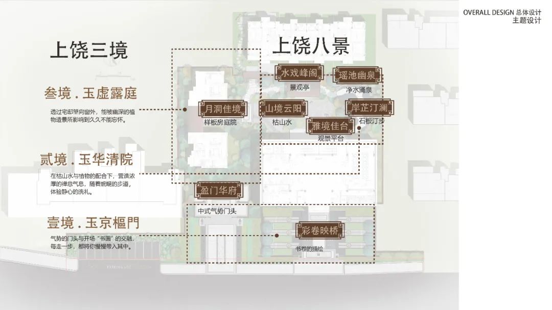項目分為2個地塊,地塊一占地60畝,地塊二占地43畝。項目示范區位置靠近城市主干道,通達性、昭示性良好。在家族昌盛的歷史中,在上饒江山背后的淵源里,賦予著博大精深的文化,護佑匠心的傳承,護佑根深葉茂的家族門第,稱之為明樾。項目傳承宋朝文化,賦予江山氣質,故案名為【江山明樾】。項目將宋朝美學與現代景觀相結合,打造一個更鮮明的東方時尚。