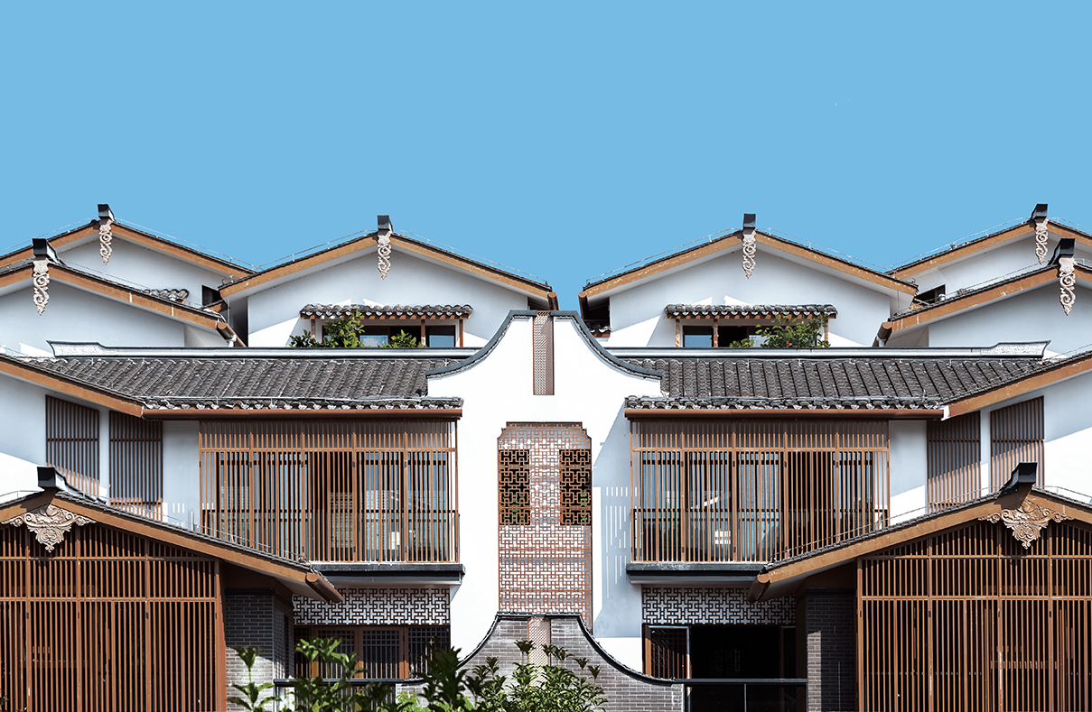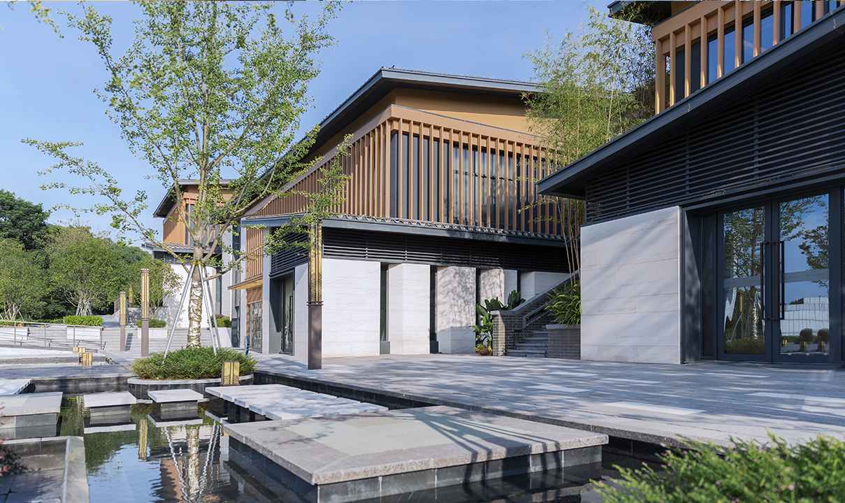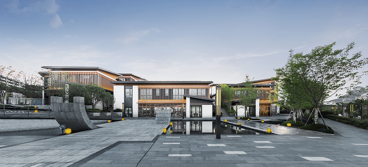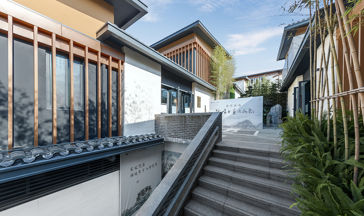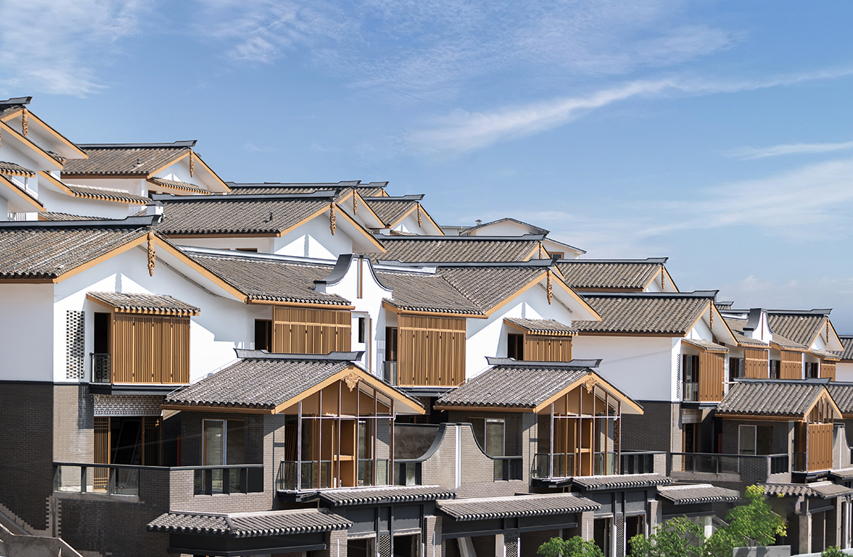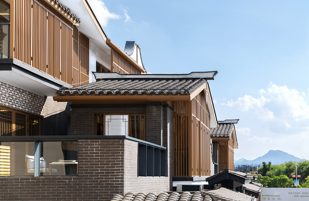 山地院墅定義休閑山居典范,強(qiáng)調(diào)組團(tuán)圍合感,形成宅中有園,園中有屋,屋中有院,院中有樹,粉墻黛瓦木色,重塑仿宋民居風(fēng)貌。