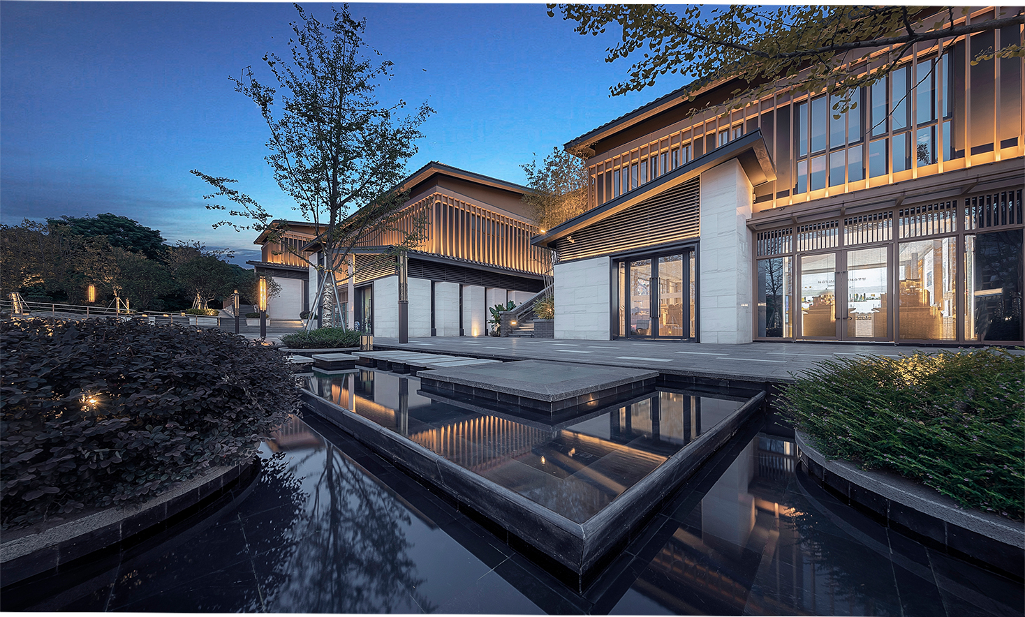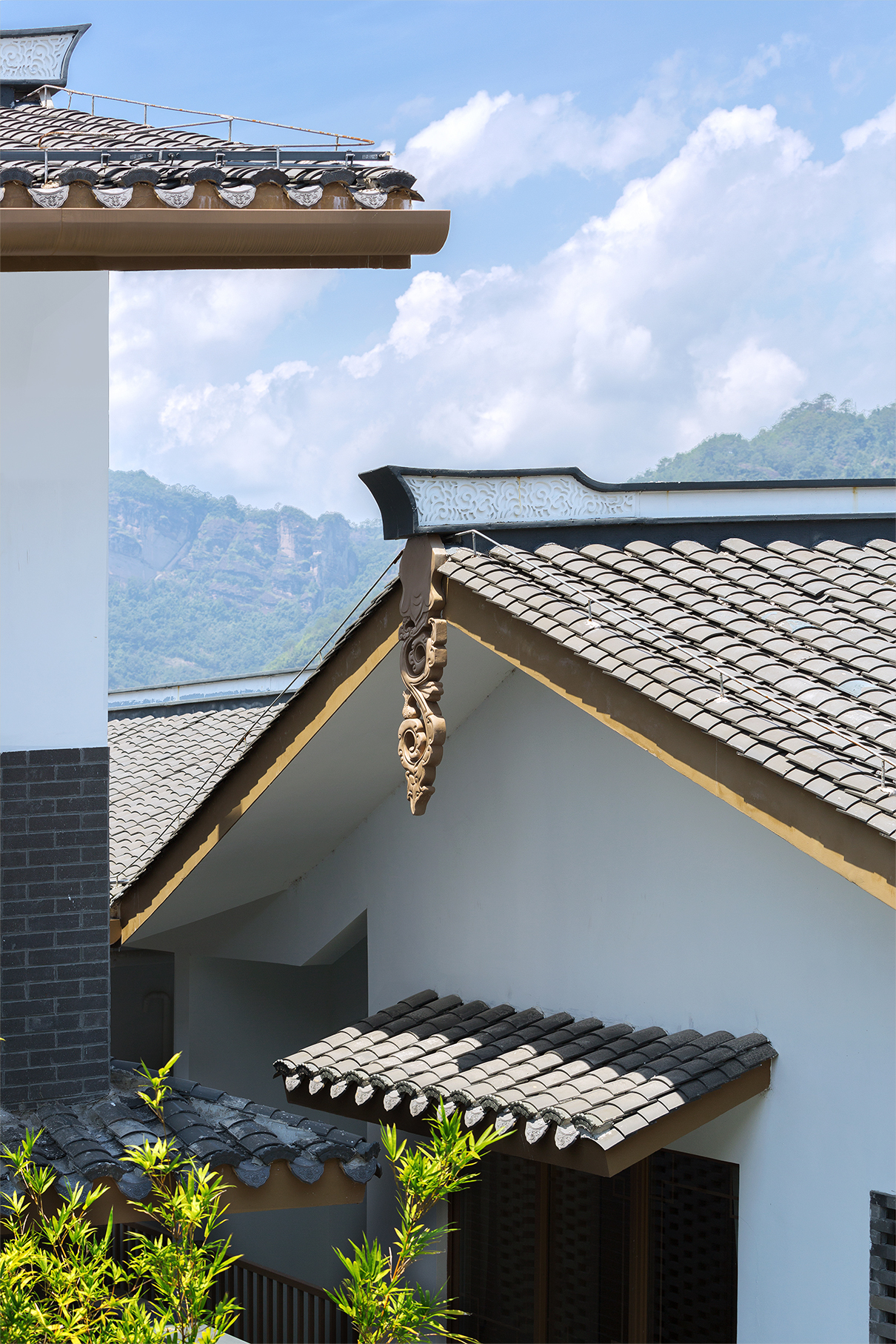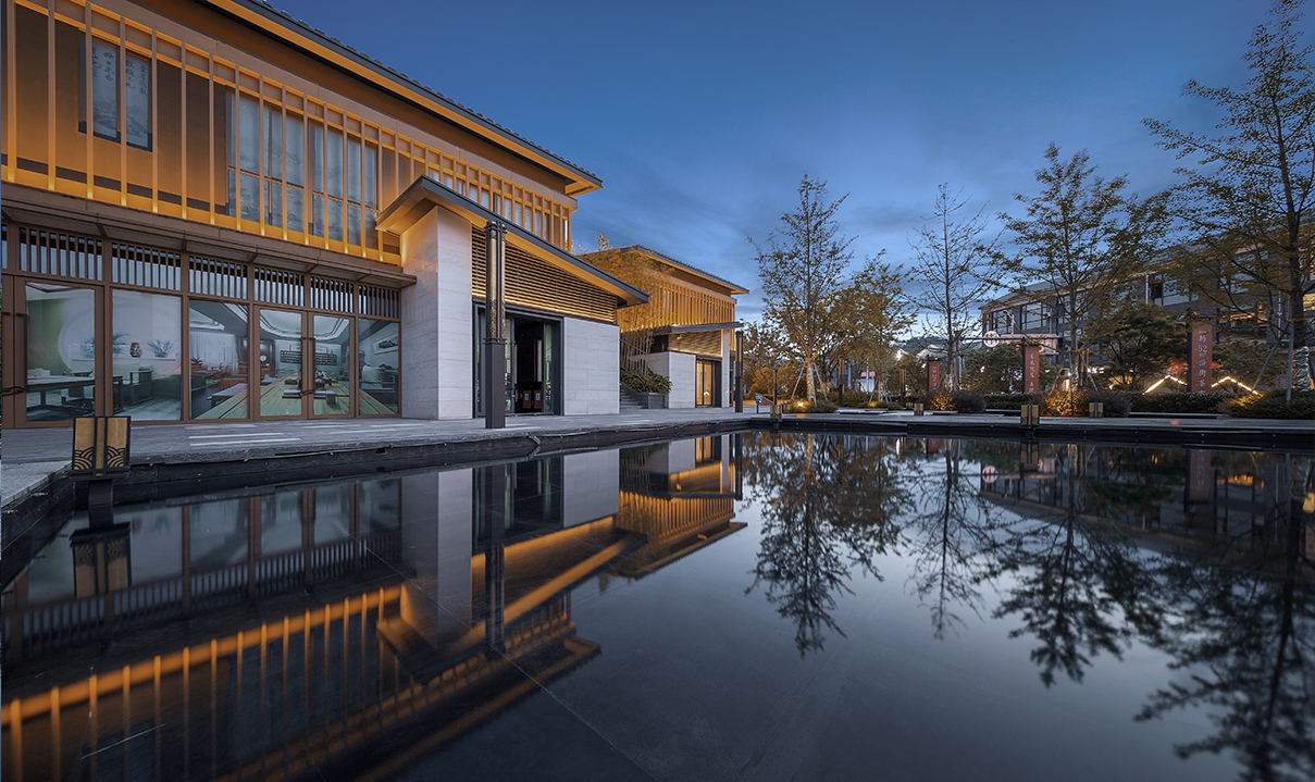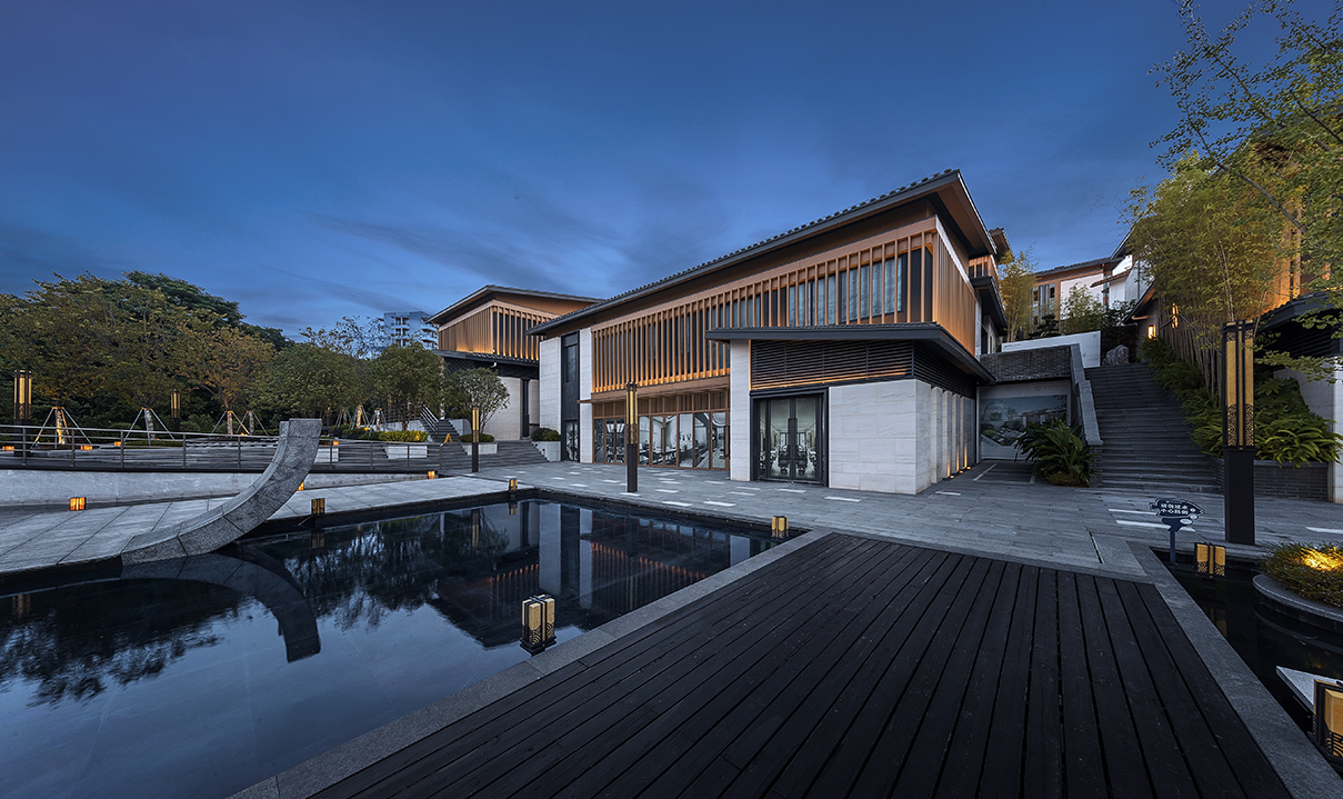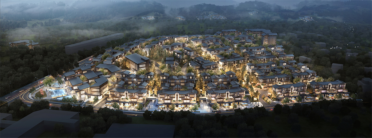 山地院墅定義休閑山居典范,強(qiáng)調(diào)組團(tuán)圍合感,形成宅中有園,園中有屋,屋中有院,院中有樹,粉墻黛瓦木色,重塑仿宋民居風(fēng)貌。