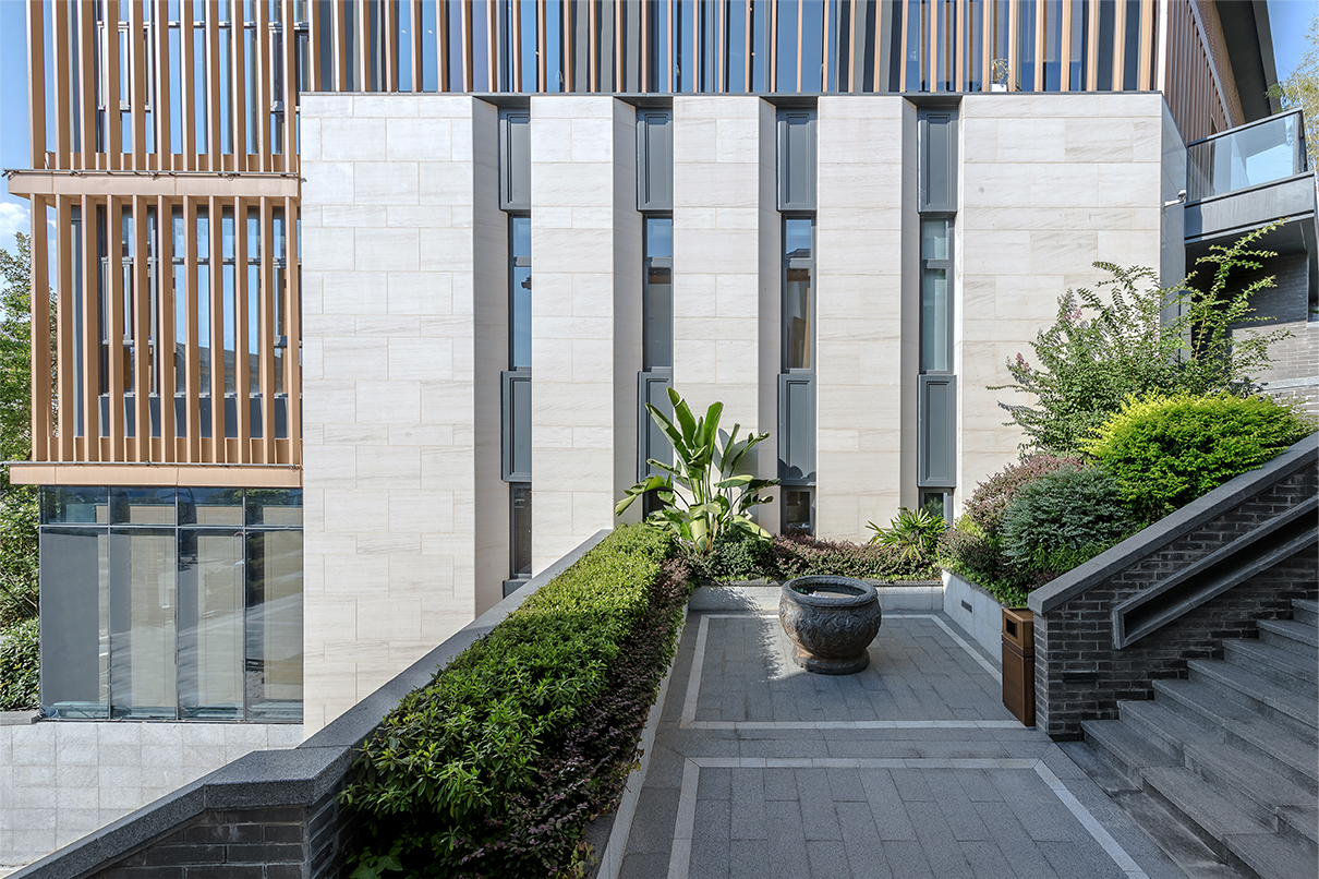 山地院墅定義休閑山居典范,強(qiáng)調(diào)組團(tuán)圍合感,形成宅中有園,園中有屋,屋中有院,院中有樹的理想居住空間。粉墻黛瓦木色,重塑仿宋民居風(fēng)貌。