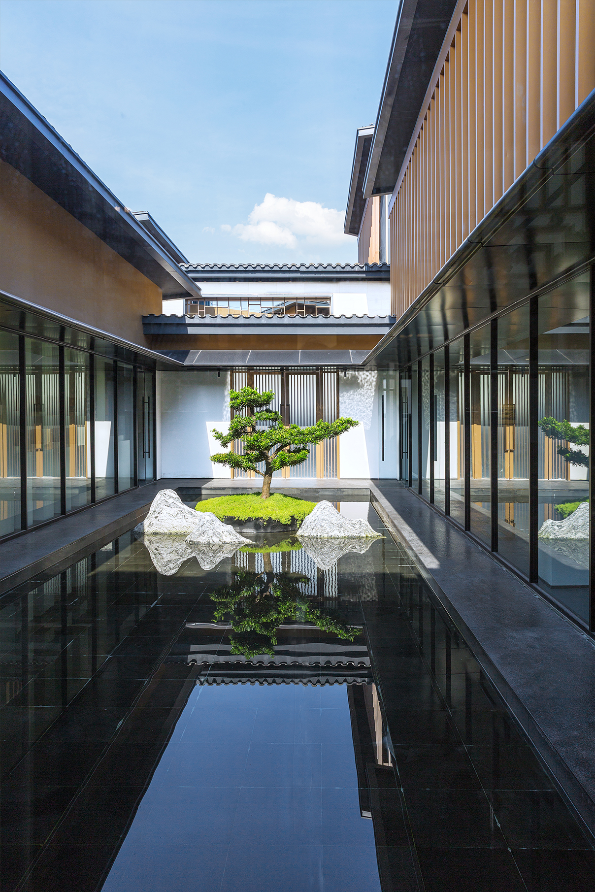 精品酒店區(qū)匯聚人文氣息,采用現(xiàn)代設(shè)計(jì)語(yǔ)言,強(qiáng)調(diào)整體、厚重、秩序感,營(yíng)造宋文化書院”禮 仁 樂“的空間秩序。